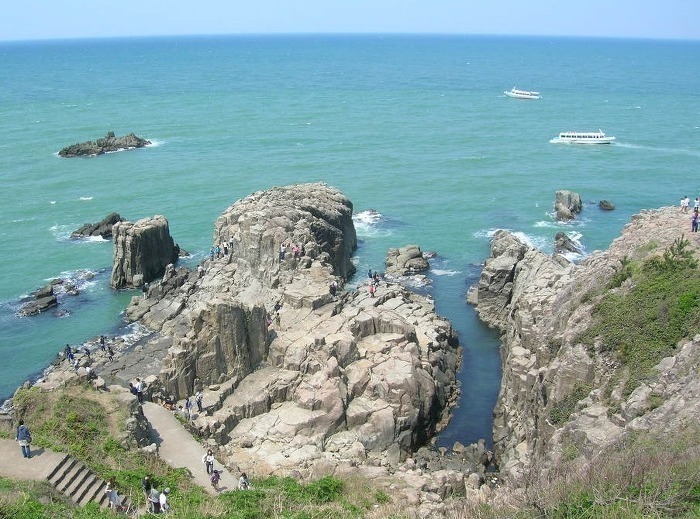 도진보 Tojimbo 는 파도의 침식을 받아 깍여진 절벽 으로 대형인 육각형 주상절리