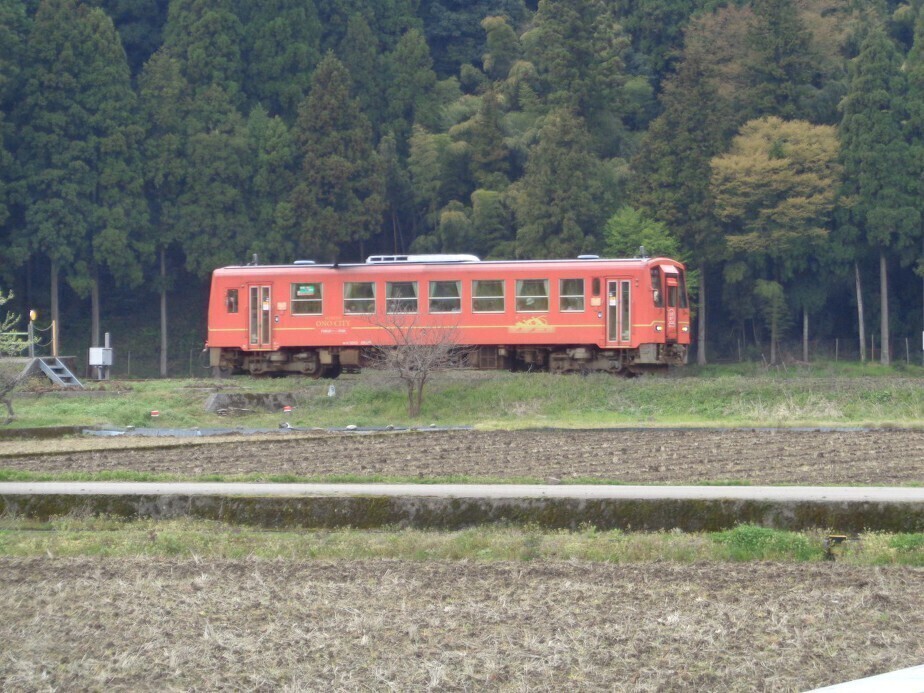 정류소에 이르니 멀리 기차 가 들어오는게 보이는데 후쿠이역에서 JR 에쓰미호쿠선 기차