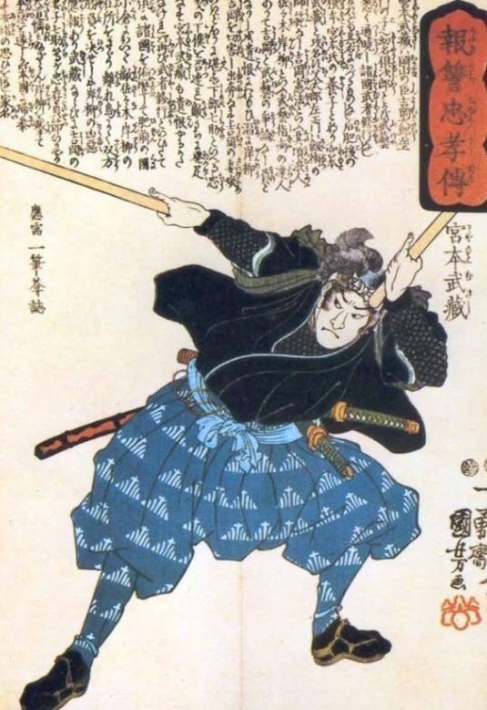 미야모토 무사시 는 로닌( 浪人, 방랑 사무라이) 으로 세상을 떠돌며 일본