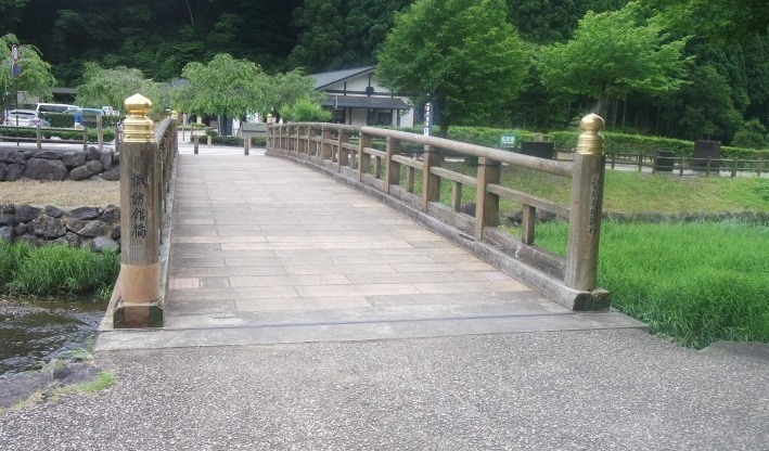 그러고는 후쿠겐쬬나미 를 나와 도로를 걸어 내려와 내에 걸린 다리 를 건너가니 거긴