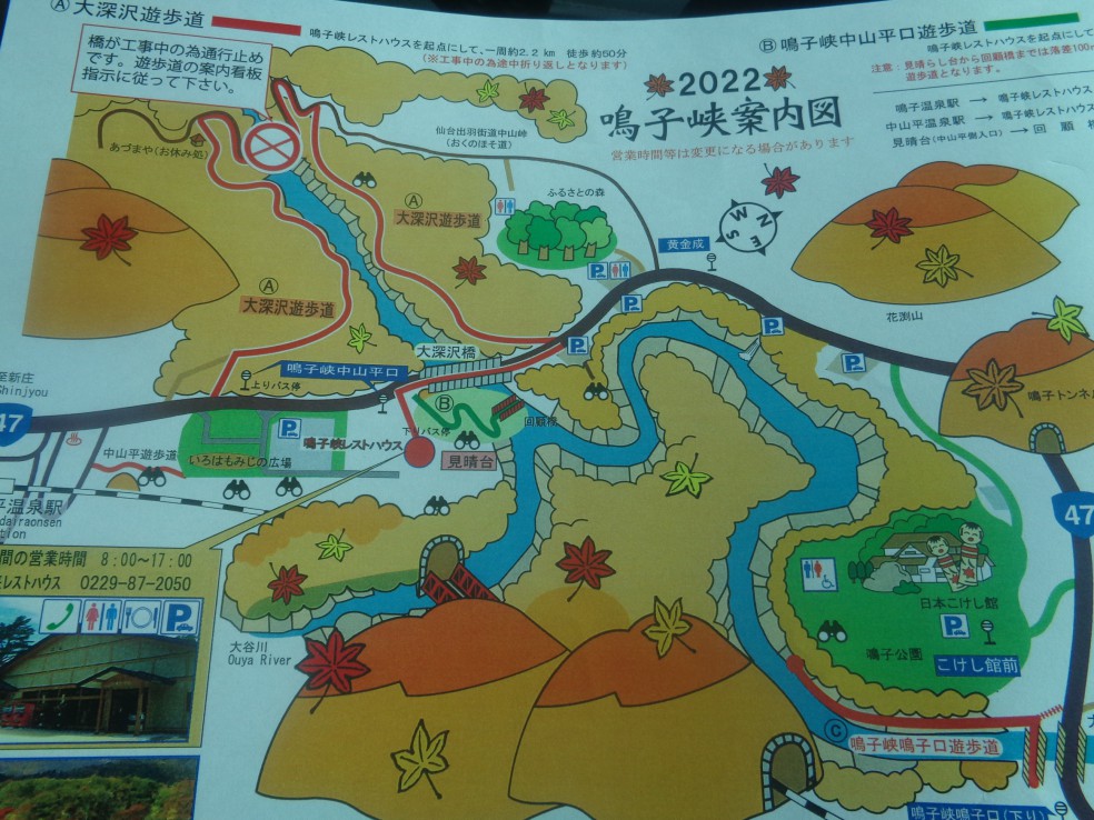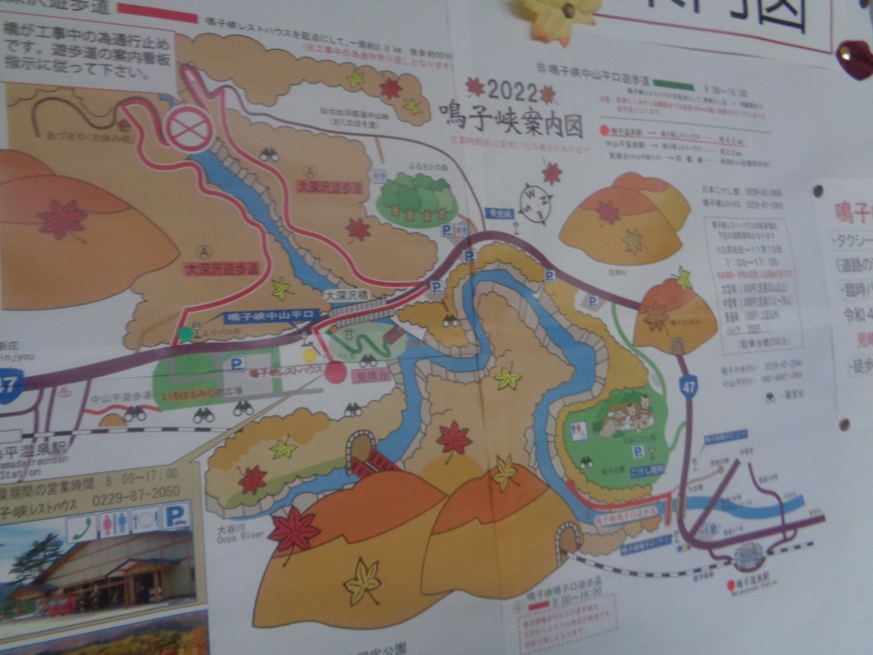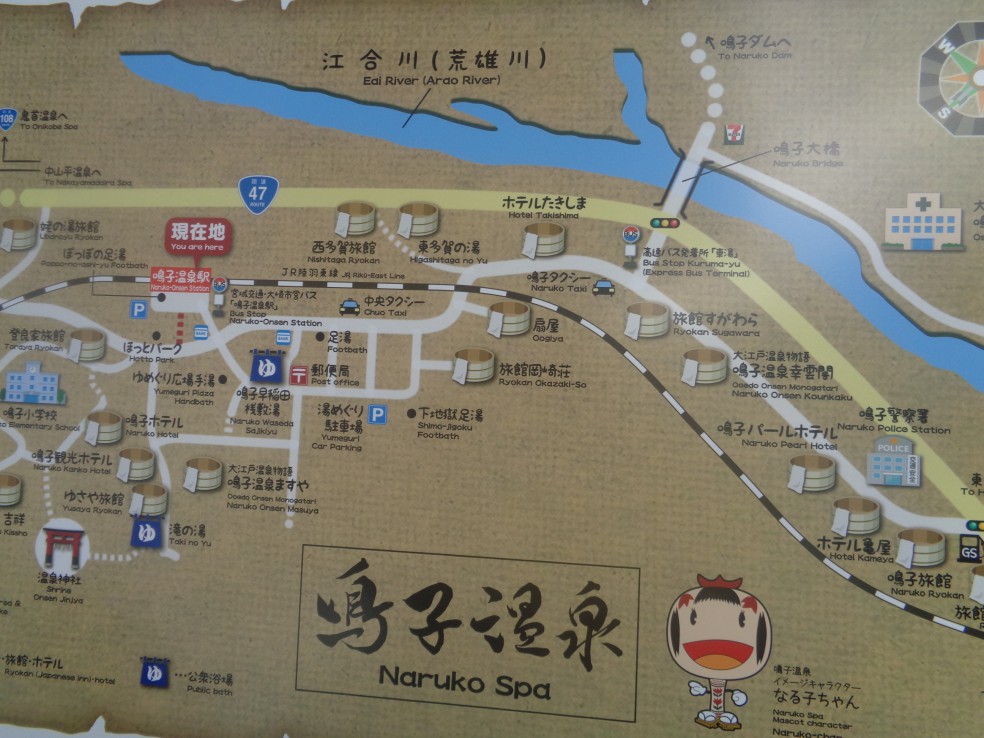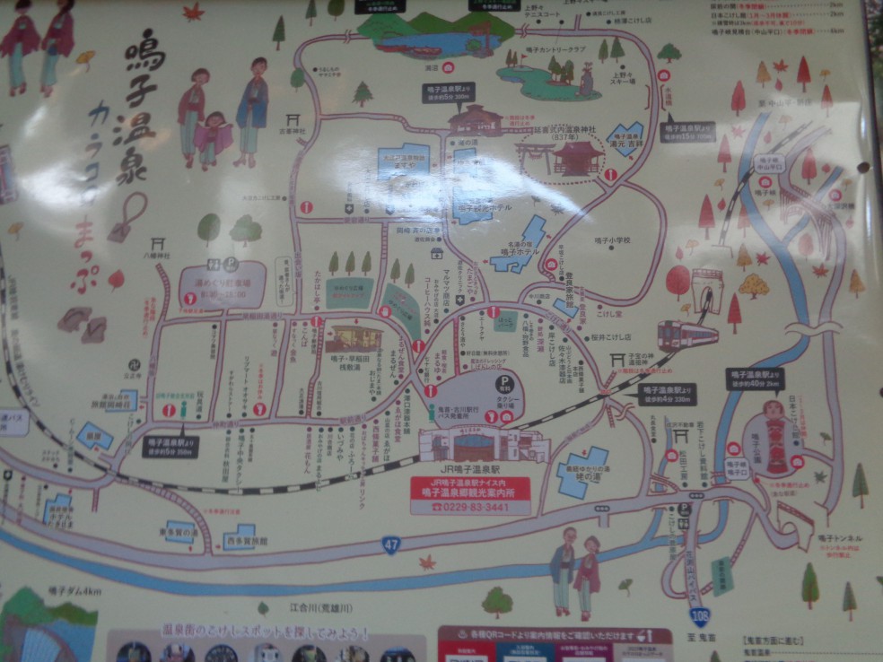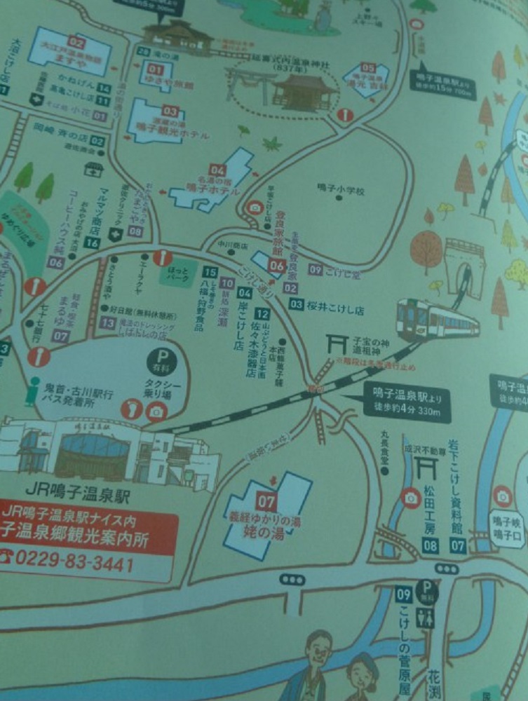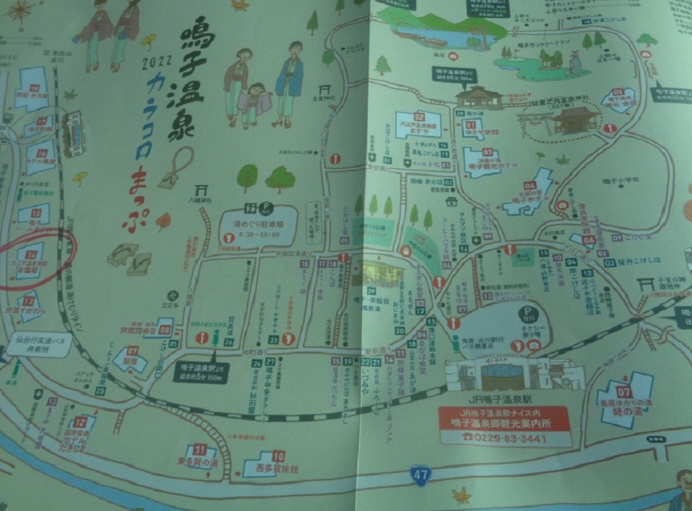 사전에 조사하기로는 나루코역 앞 宮城県大崎市鳴子温泉字湯元 2-2 번지에 오사키시 나루코 관광·료칸안내