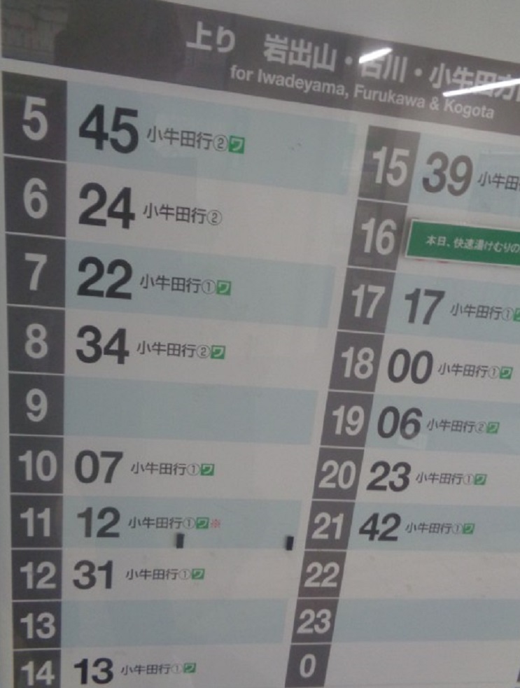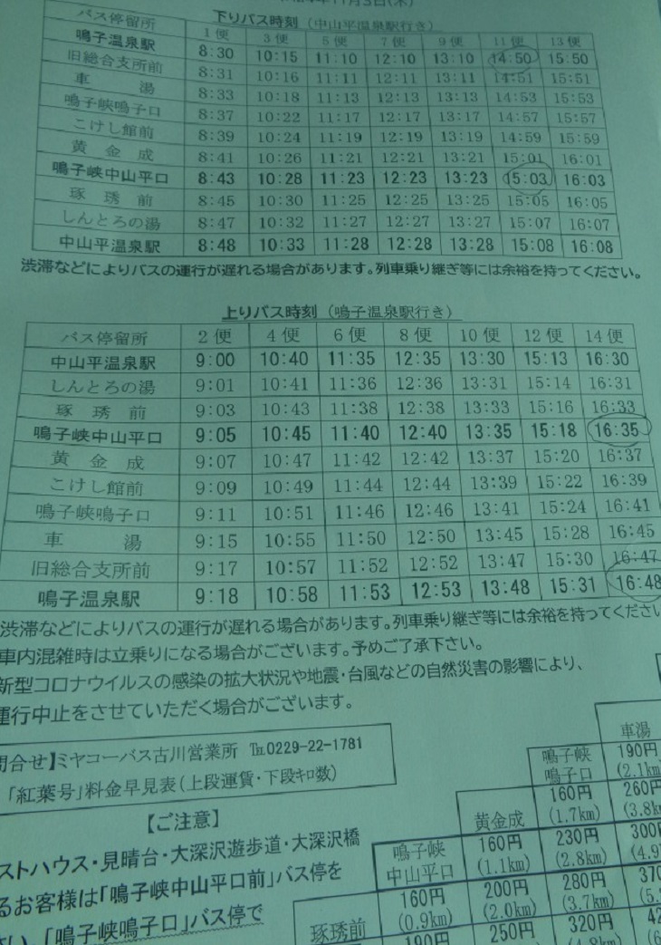 나카야마다이라 (中山平) 온센역행 셔틀 버스 시간표를 보니 14시 50분 버스를 타고 15시 03분에 명자협