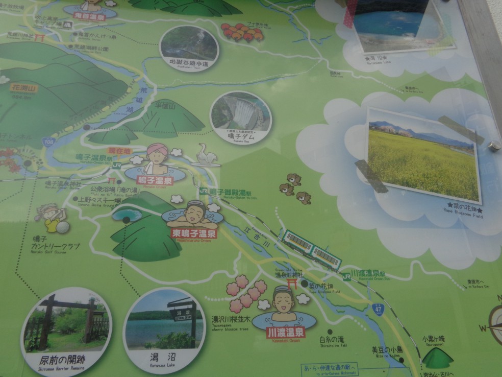 버스를 타고는 유자와 湯沢(탕택) 에 도착하는데, 미야기현의 나루코 온천 鳴子溫泉 으로 가야