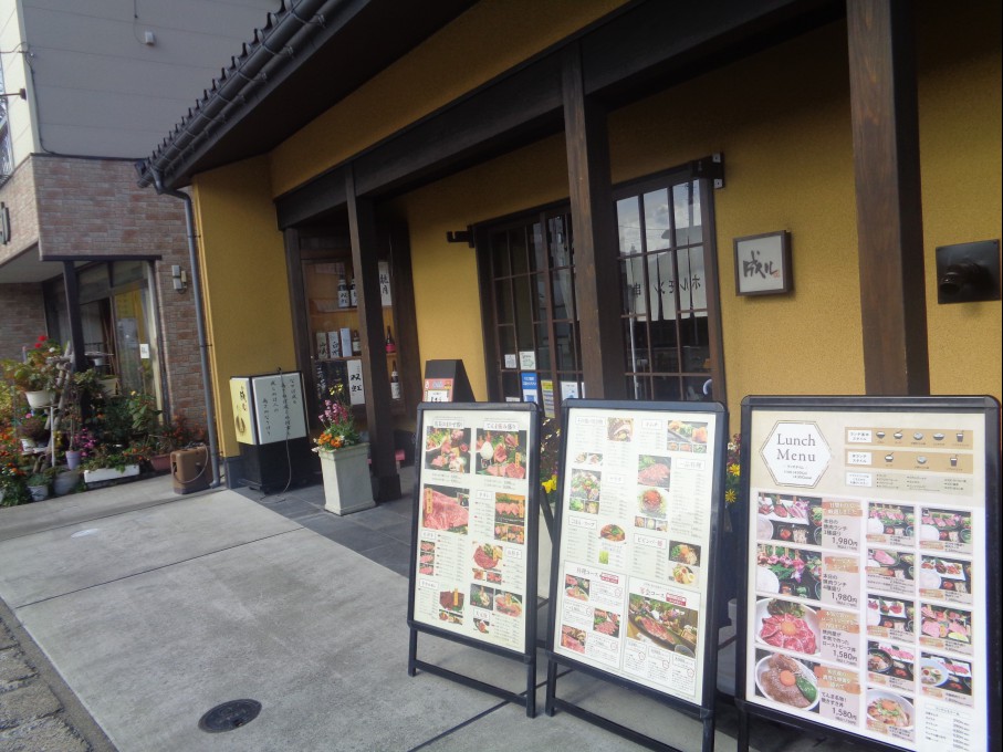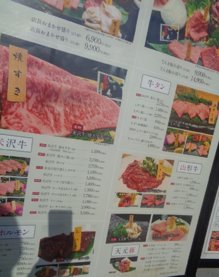도로변에 음식점들이 늘어섰는데.... 요네자와 소 (米沢 牛) 를 이용한 소고기