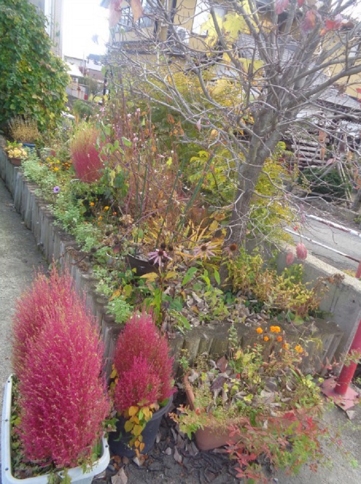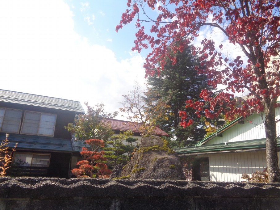 조차도 한없이 붉은데.... 담장이나 대문이 없는 일반 주택의 마당에 나무와 꽃이 참으로 아름답습니다.