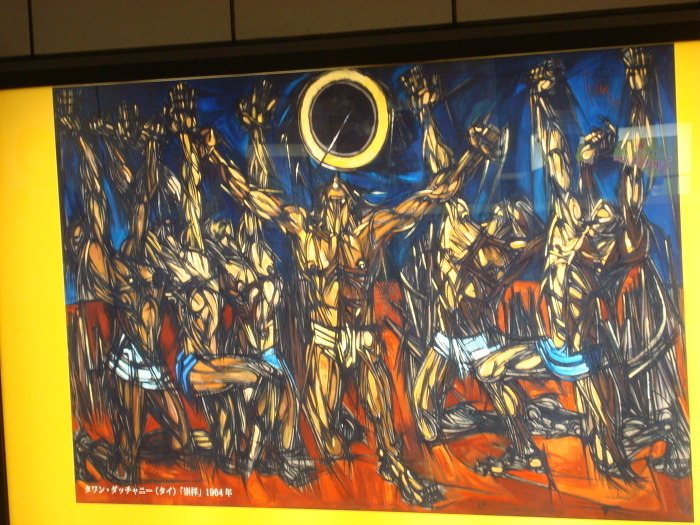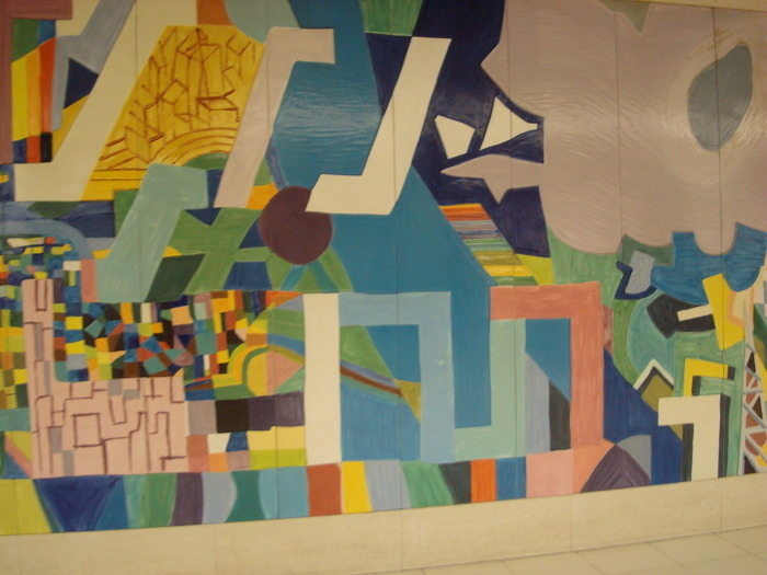 지하철 텐진역 에는 추상화 를 비롯해 이런저런 여러 가지 선전 그림들이
