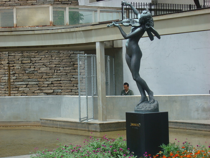 온 몸으로 바이얼린 을 켜고 있는여인의 조각상 이 눈길을 끕니다.