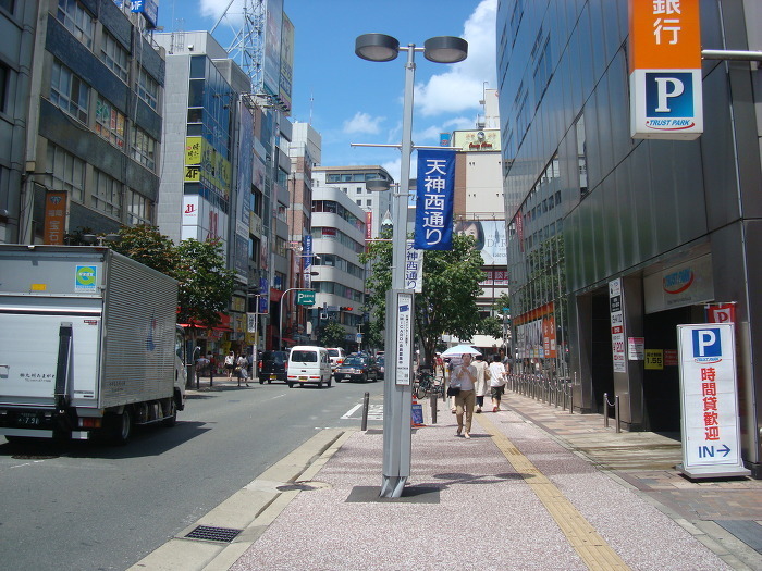 도로가 나오는데, 여기가 바로 텐진 天神 의 니시도리 西通り 입니다!