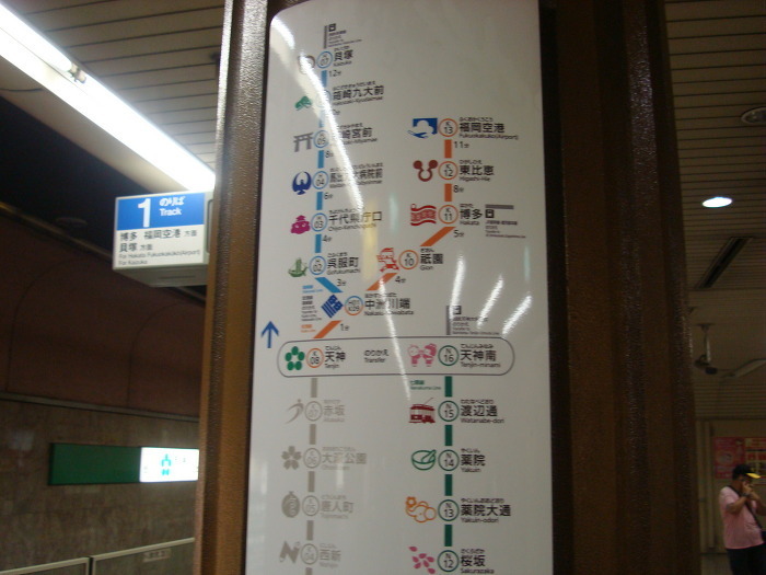 그만 발길을 돌려 쿠시다 신사 로 가기로 합니다. 지하철을 타고 한정거장인 나카스가와 中州川