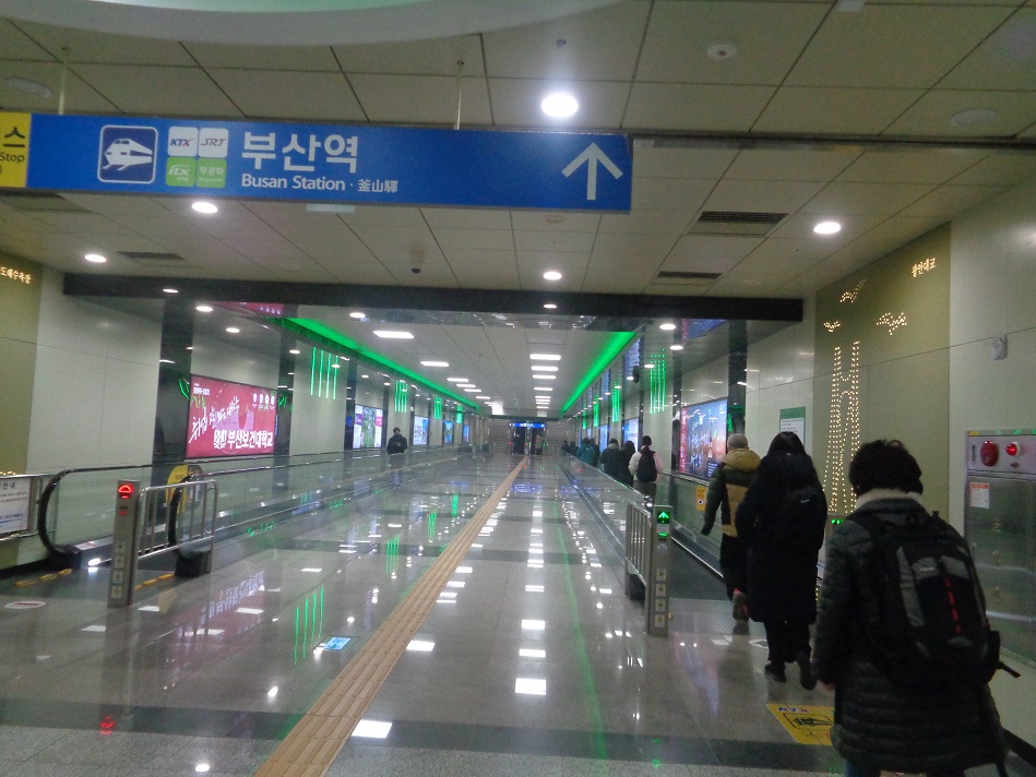 2024년 1월 25일 아침에 지하철을 타고 부산역 에 내려 평면 에스컬레이터 로 이동해