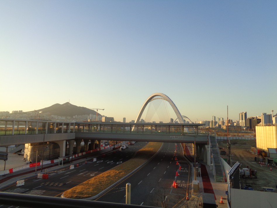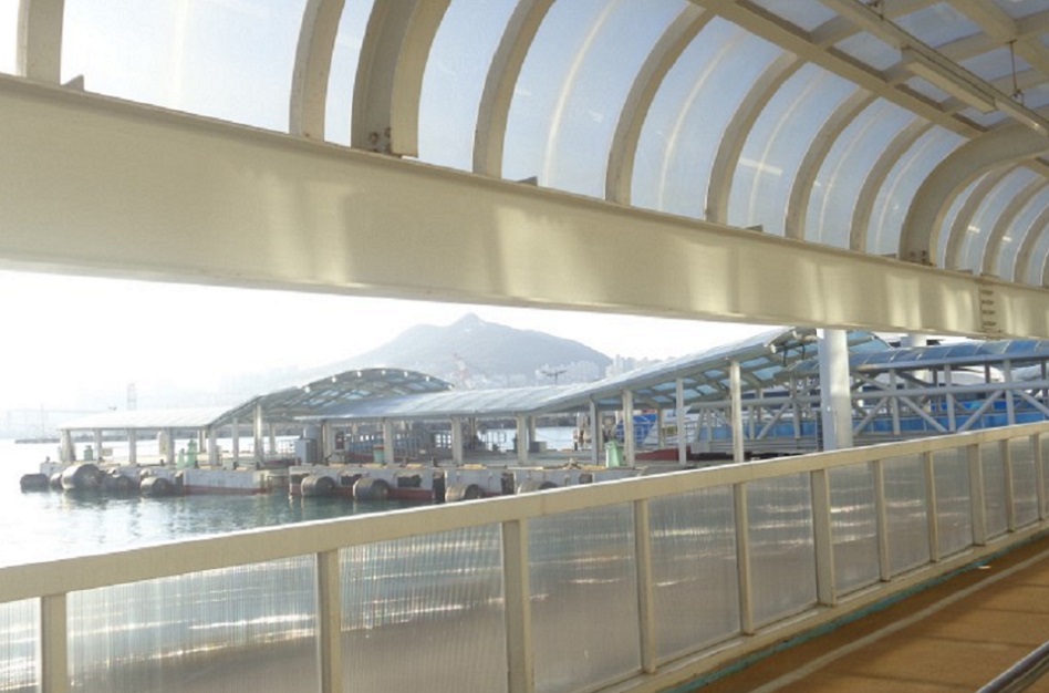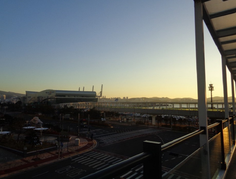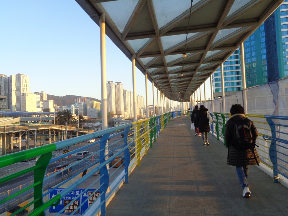 나가서는 덮개가 있는 구름다리 를 7~8분을 걸어서 부산 국제여객 터미널 로 갑니다.