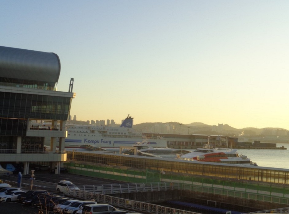 항을 밤에 출발 다음날 아침에 부산항에 도착하는데 큰 배라 멀미 걱정은 없습니다.