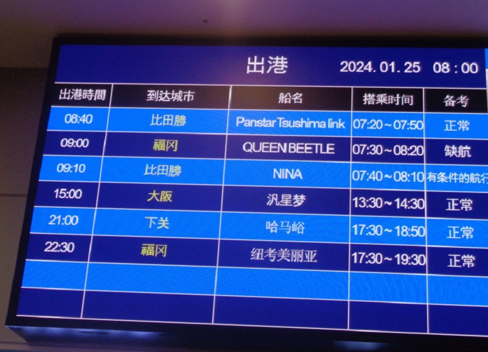 매일 운행 한다는데, 현재는 쓰시마링크호 와 니나호 NINA 두 회사가 운행중 입니다.