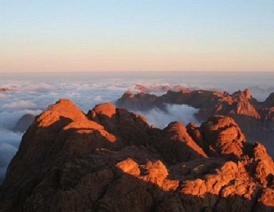 3시간 정도 걸려 5시 쯤 되어 정상인 가바르무사 (모세산, 시나이 산) 에 도착하는데 산 정상에는1930년에