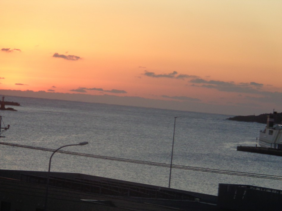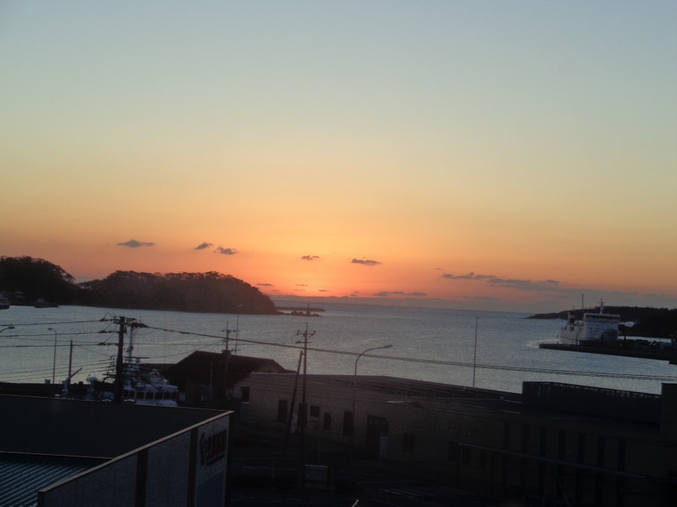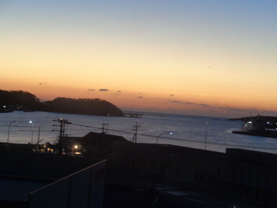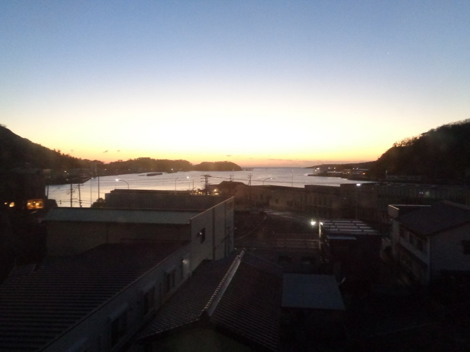 2024년 1월 26일 새벽에 일어나니 창이 밝아오는지라 보니..... 창 밖으로는 히타카츠항이