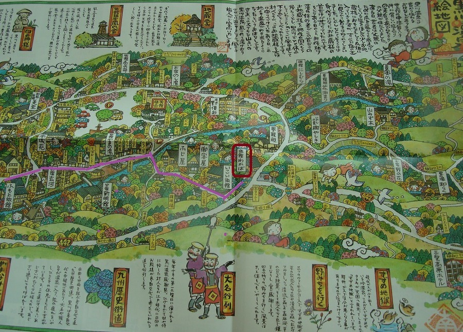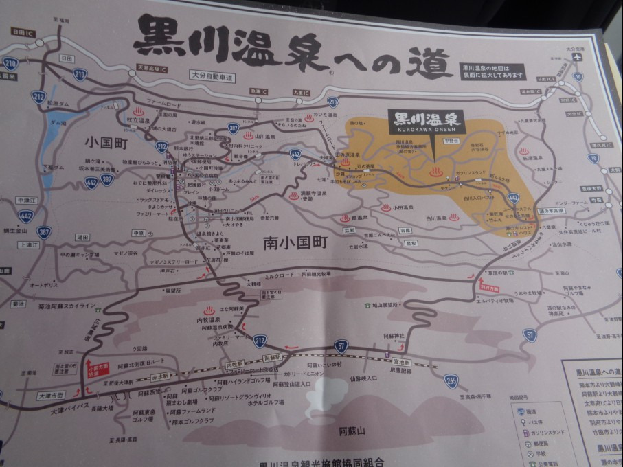 由布院 을 거쳐 11시 35분 구로카와 온천 黑川溫泉 에 도착하며 이후 아소화산을 거쳐 구마모토 까지 갑니다.