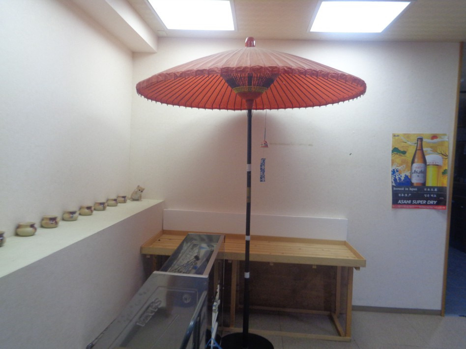 호텔(식당) 건물의 1층에 들어서면 인테리어 가 돋보이니 일본식 붉은 우산