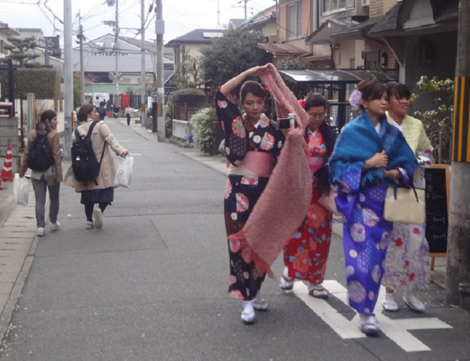 뱃놀이 하는 사람들이며 고풍스러운 인력거 에다가 기모노 입은 여인들이 참 예뻐 보입니다.