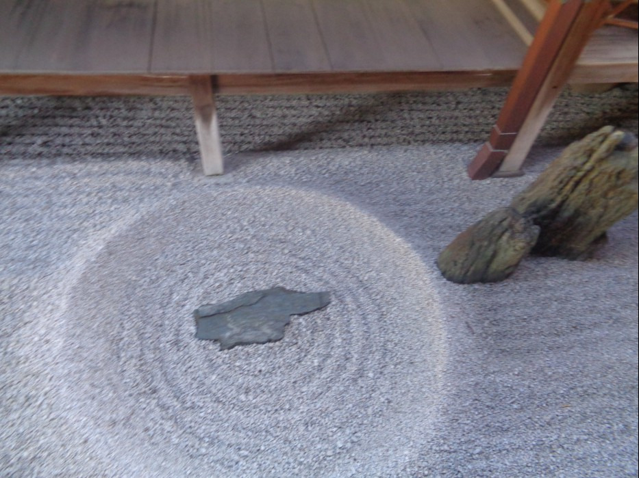 간주하는데.... 잔모래나 자갈을 쓰지 않고 돌 표면의 문양으로 물의 흐름을 표현한 정원도 있습니다.