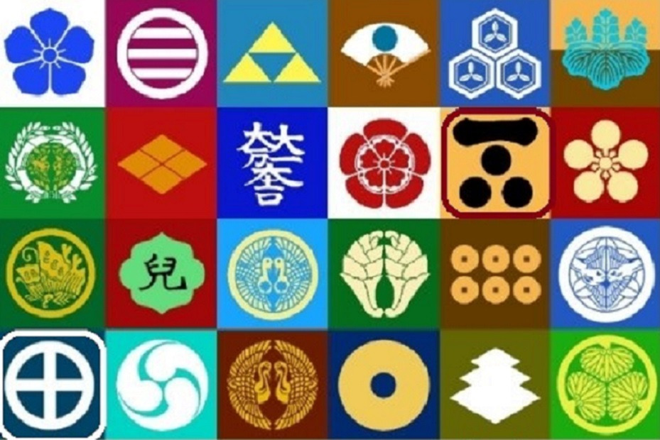 시마즈씨는 고삐(재갈, 열십자) 문장을, 호소카와씨는 떨어진 구요를, 다케다씨는 다케다 마름모,