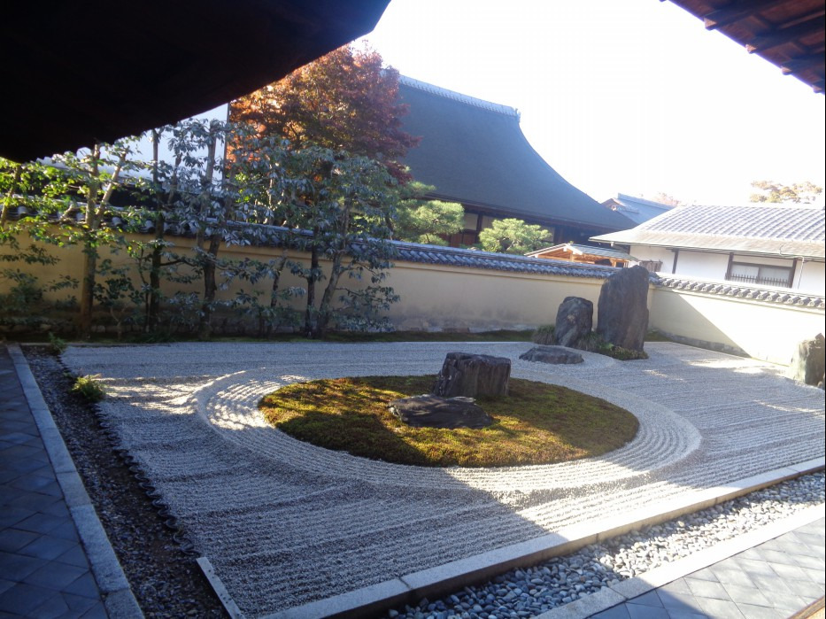 특히 교토 료안지(竜安寺) 의 돌 정원은 나무나 풀 없이, 담으로 둘러싸인 정원에 흰 모래와