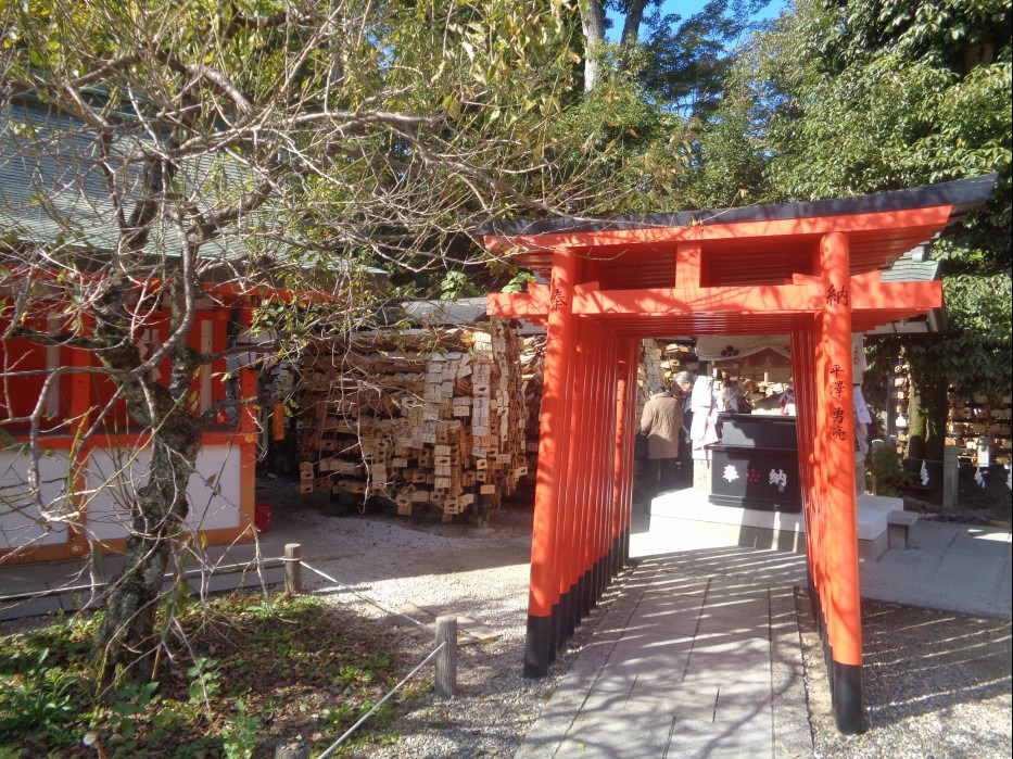 에도 소원을 적은 나무조각들이 다른 신사에서 볼 수 있는 것보다 훨씬 많이, 빽빽히 매달려 있습니다.