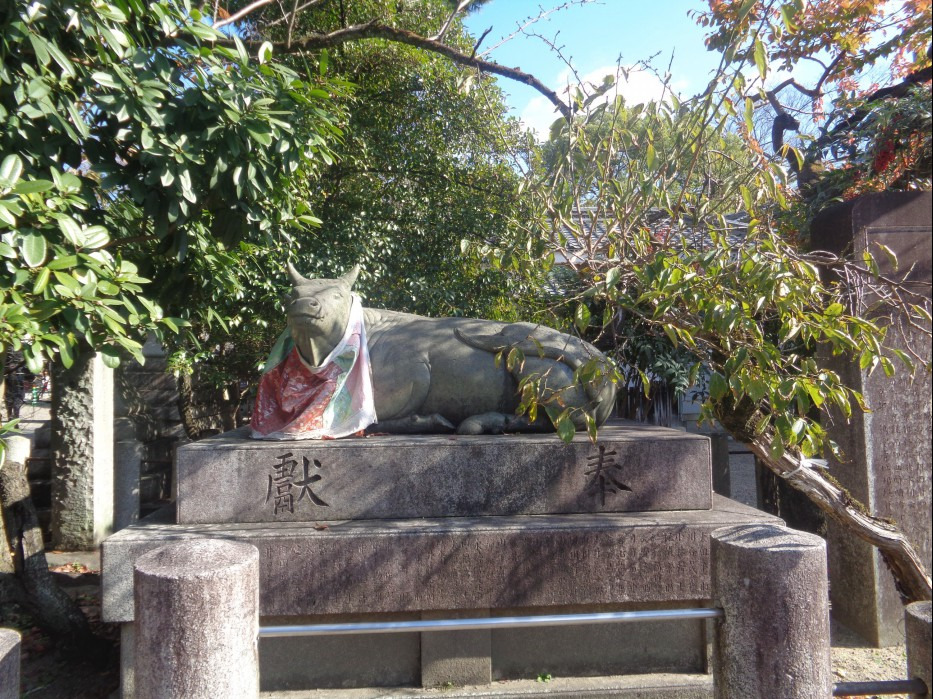 덕분에 스가와라 미치자네를 모신 다자이후 텐만구를 비롯해 그 외에 신사에 가보면 소 동상이 많은데