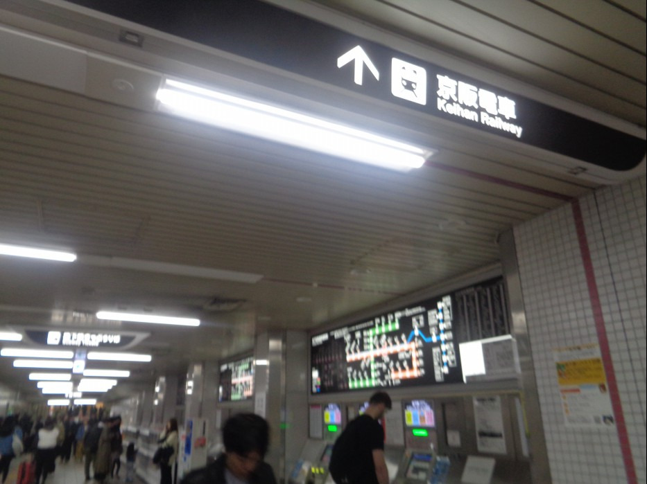 통로를 걸어서 케이한 전철 케이한혼센 (京阪本線) 산조역 (三条駅) 에 도착해서는 경판압동선