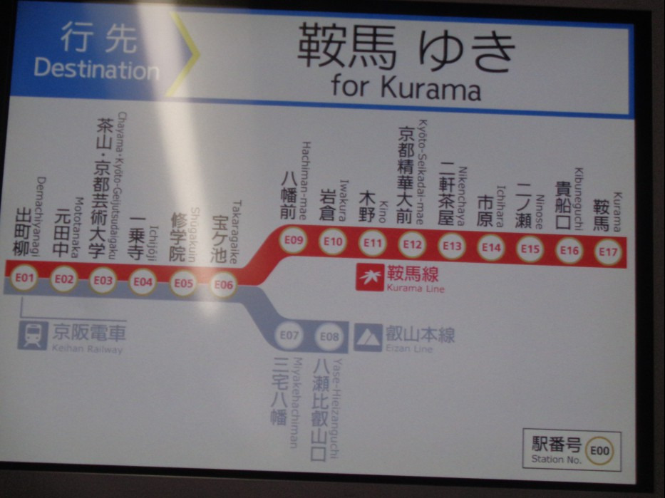 에이잔철도 쿠라마선 Eizan Railway 鞍馬 (안마, Kurama ) 으로 환승해야 합니다.