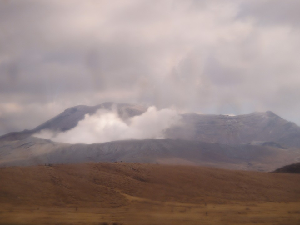 그러고는 더 올라가서 등성이를 돌아가니 저 멀리 연기가 엄청 피어오르는