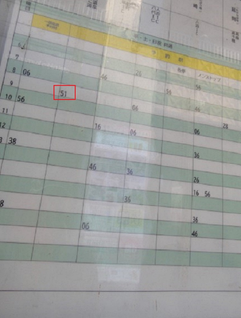 버스 터미널에는 9시 45분에 도착하고 여기 도리초스지에는 9시 51분에 도착할 예정 입니다.