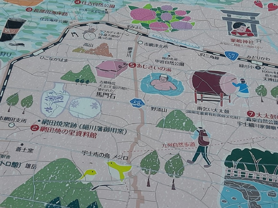 기차는 고니시 유키나가의 영지였던 우토시를 지나고 다시 달리니 오른쪽에