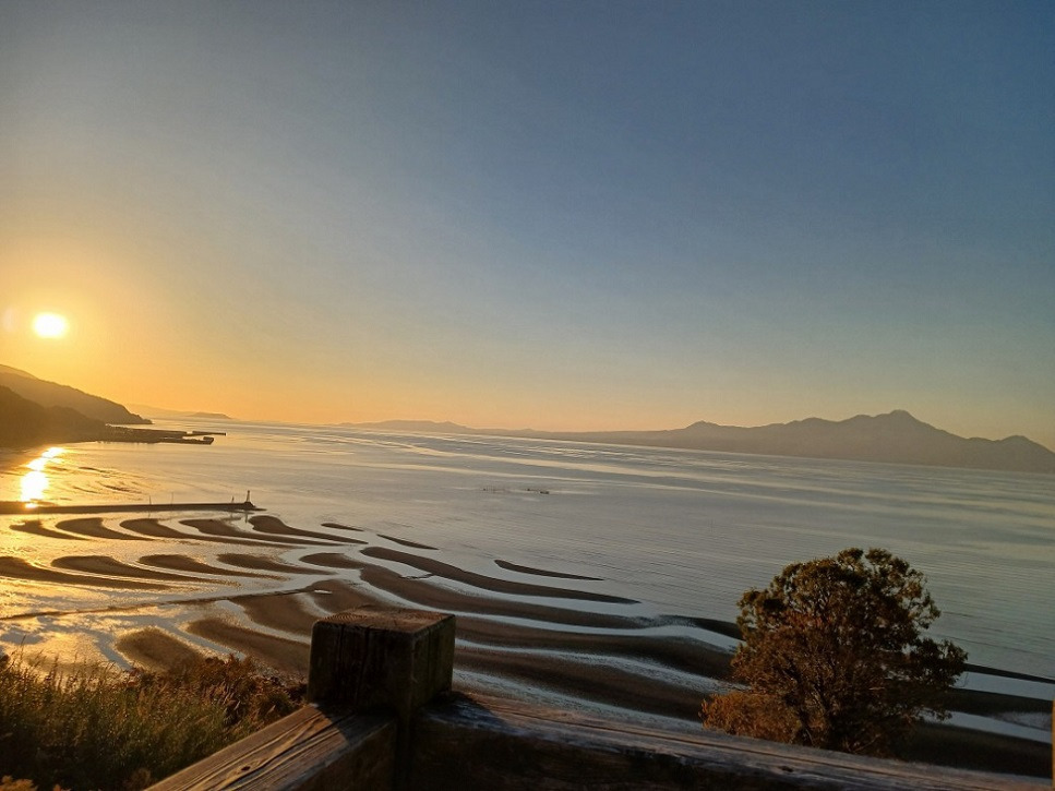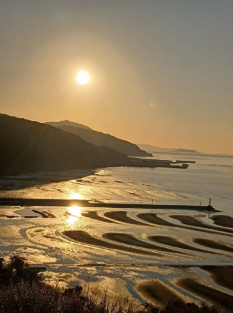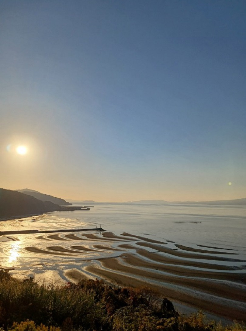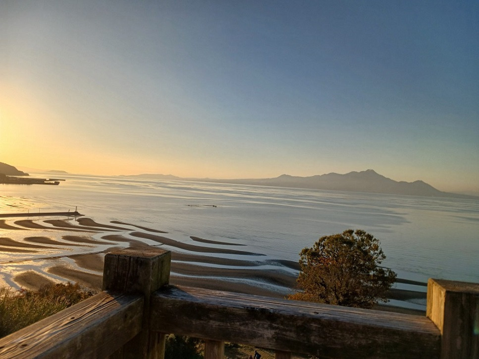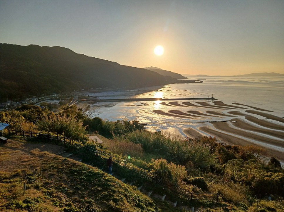 의해 그려진 초승달 모양의 무늬가 나타나니 일본의 100개 석양, 100개 해변에 으뜸이라고 합니다.