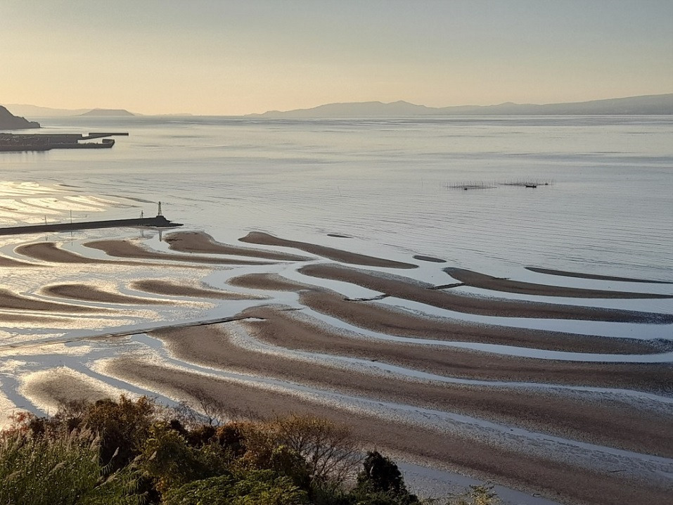 오코시키 해안은 아리아케 해에서 유일하게 조수가 심한 곳이라 절경이니 썰물이 되면 바람과 파도에
