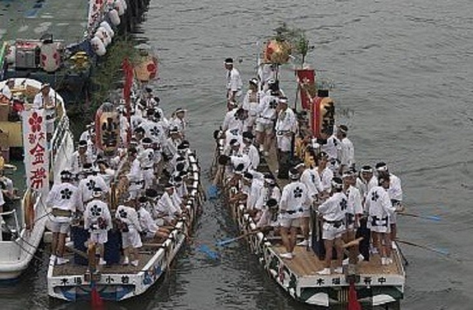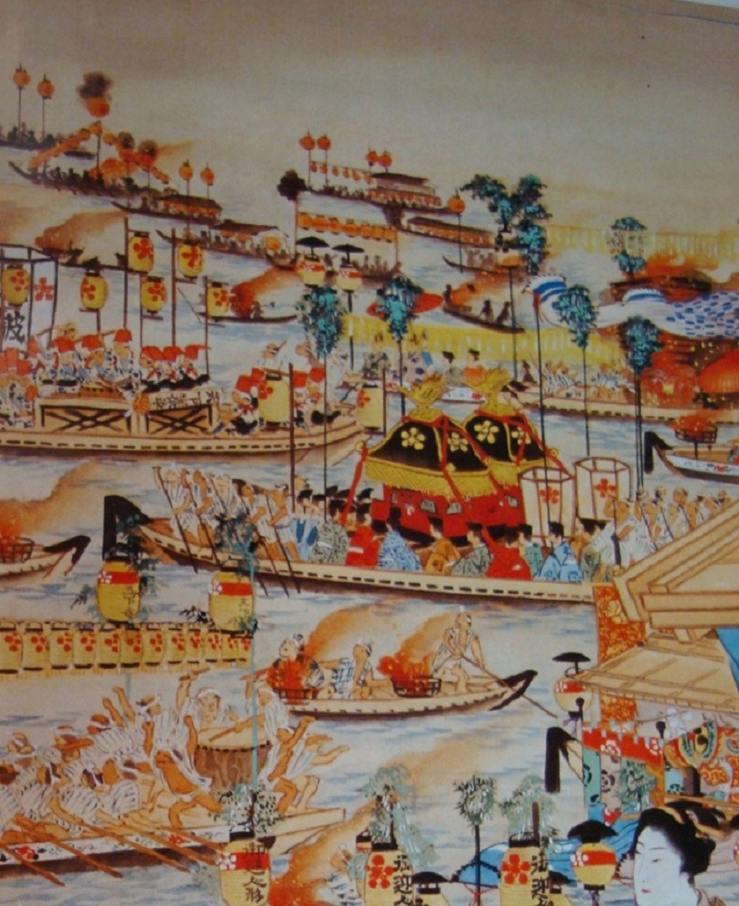 행사를 하고는 도시마가와와 오가와(大川) 를 백여척의 배가 거슬러 올라가는 데....
