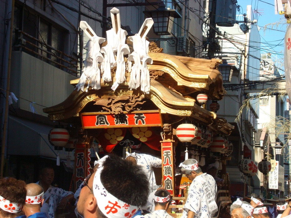 오사카 텐만구 (대판 천만궁) 에서 나온 텐진마쓰리 행열과 가마가 한차례 휩쓸고 신명을