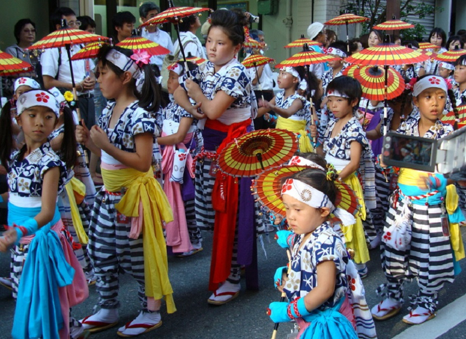교토 기온 마쓰리는 전통적인 제례를 따르는 탓인지 여자가 전혀 없이 "남자 일색"
