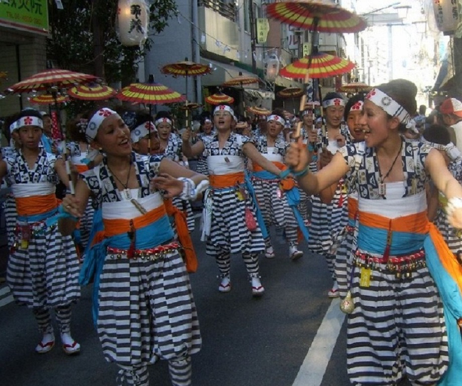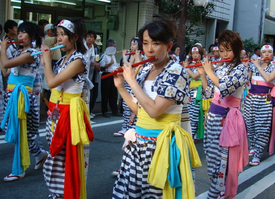 7월 25일 오후 3시 요도야바시역에 내려 토좌제천(土佐堤川) 강을 건너 처녀들이 나누어 주는