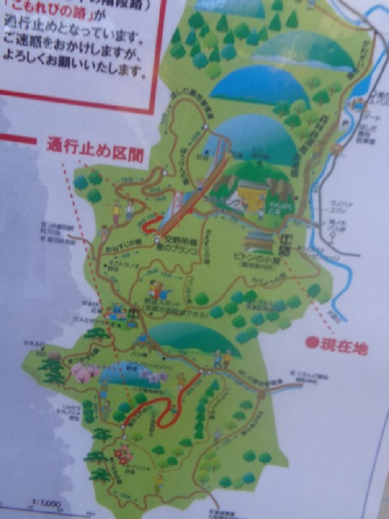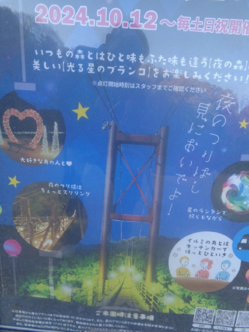 하는 모습을 구경하고.... 산 위에 호시노 공원의 상징인 호시노 브랑코 ( 星のブランコ) 다리를 봅니다.