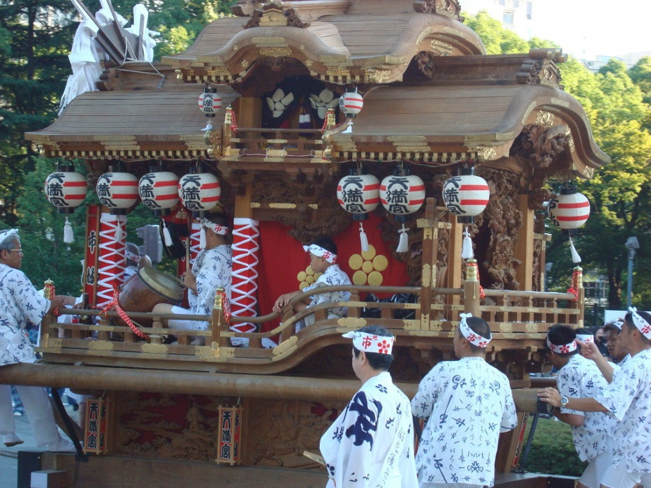 7월 25일 오후 4시에 오사카 텐만구 신사에서 행열이 출발하여 나카노시마에서 후나토교 ( 船渡御 )