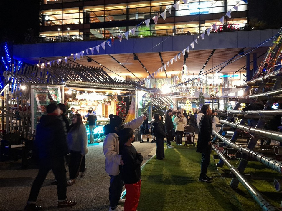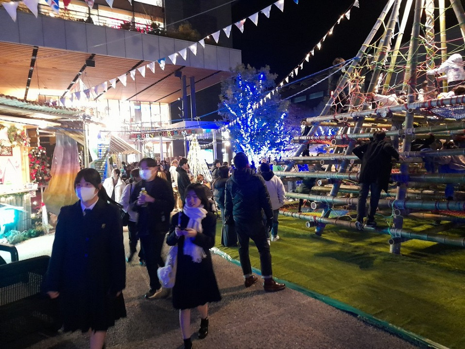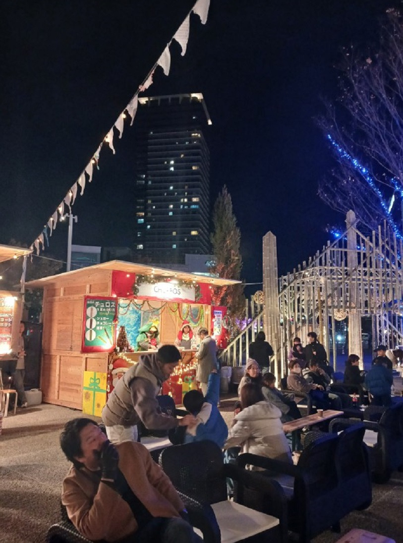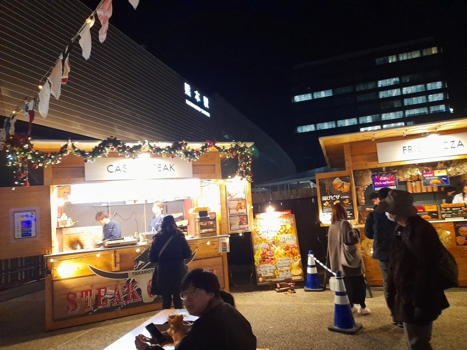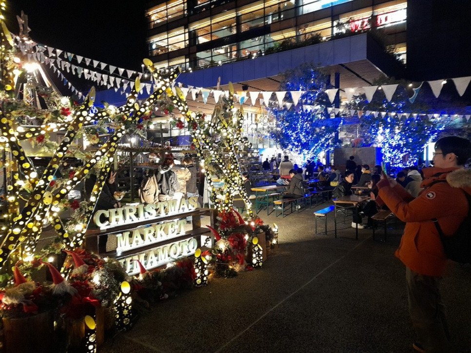 카라시마초에 내려 사쿠라마치 터미널이 있는 광장에서 보았던 바로 그 "크리스마스 마켓" 입니다.