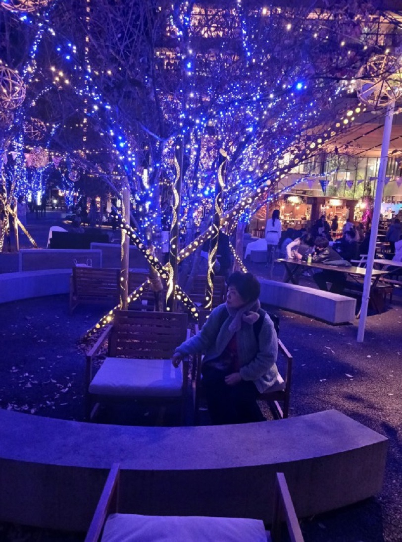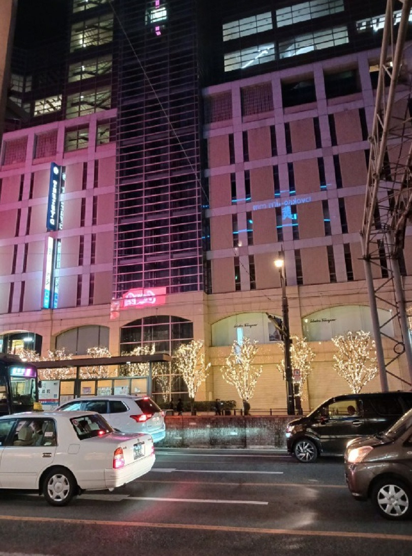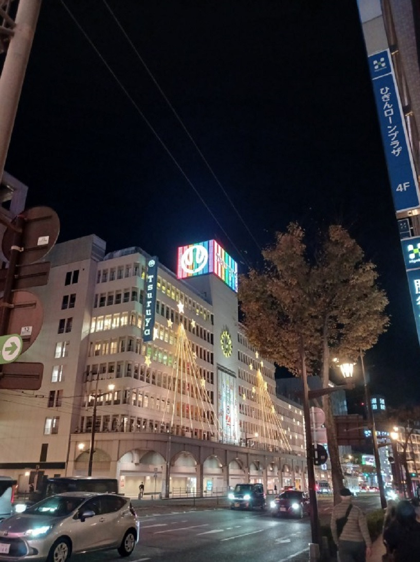 그러고는 구마모토역 광장으로 나오니 전등으로 불빛이 엄청 휘황찬란한데..... 바로 어젯밤에 전철