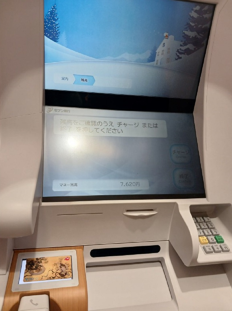 그때 5천엔을 선택한후 돈을 넣고는 영수증 발급 버튼을 터치하면 영수증이 나오면서 충전이 된 것입니다.