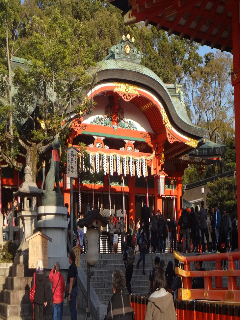드디어 이나리진자 에 도착하는데 붉은색 신사 건물이 인상적 이며 이나리