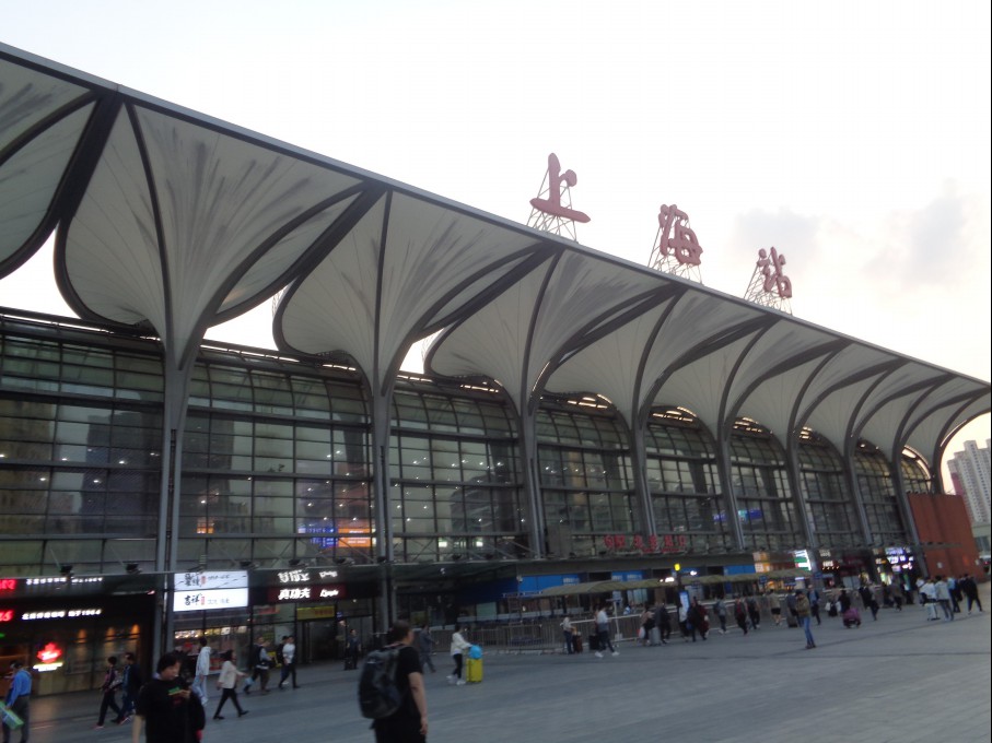 호텔을 나와 남쪽으로 걸어서 상하이 기차역 에 도착해서는 내일 아침에 기차를 타고 쑤저우(소주)로 가야