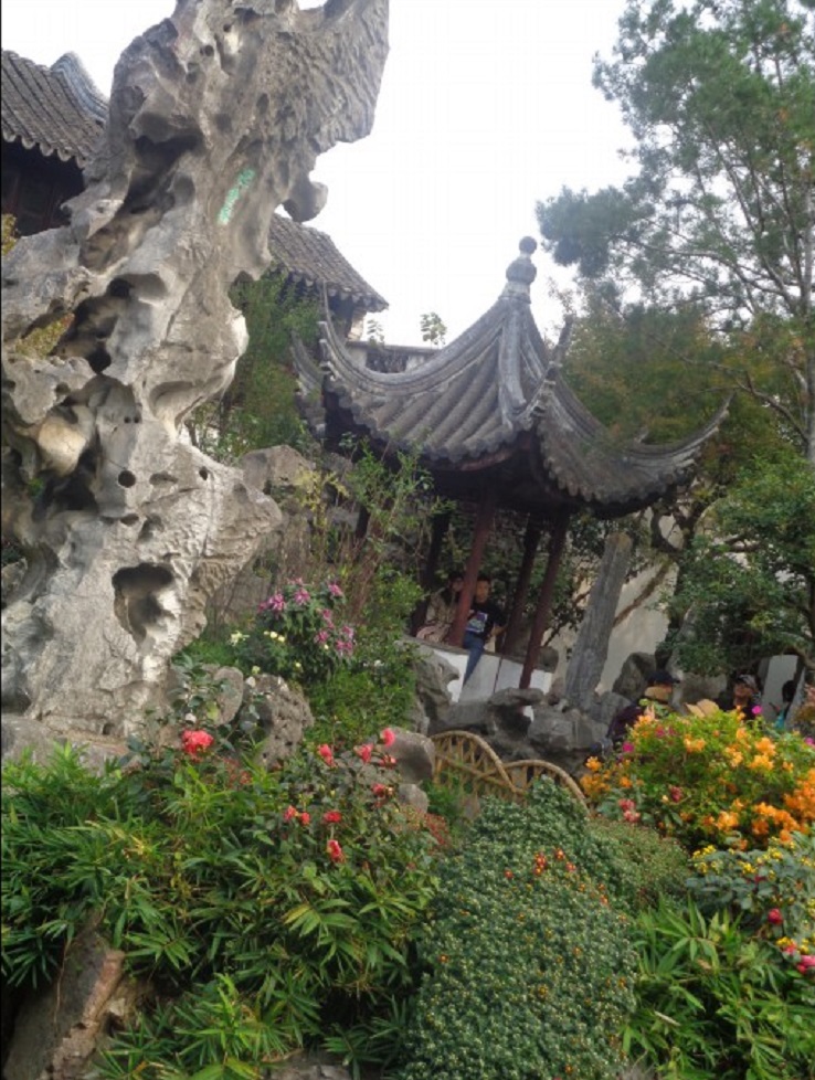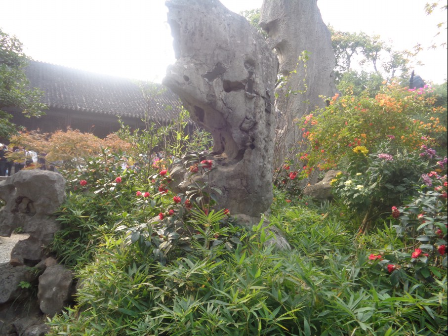 중국의 전통 정원은 "태호석" 을 사용해 기괴하면서 독특한 암석 가산 과 연못이며