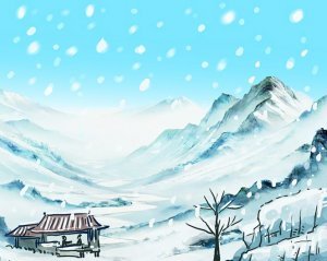대지는 백설로 뒤덮이고 바람은 찬데, 주먹만 한 눈송이가 공중에 흩날린다.