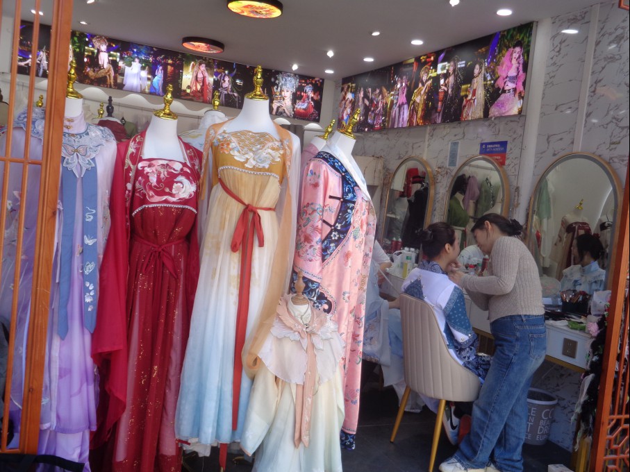 정원을 지나 안으로 들어가니 중국의 옛날 옷.... 그러니까 송나라나 명나라 시대에 옛 옷을 빌려주는