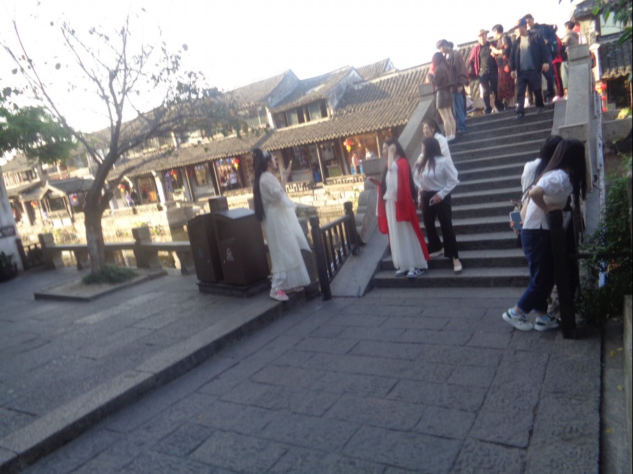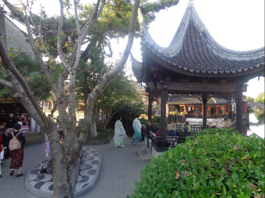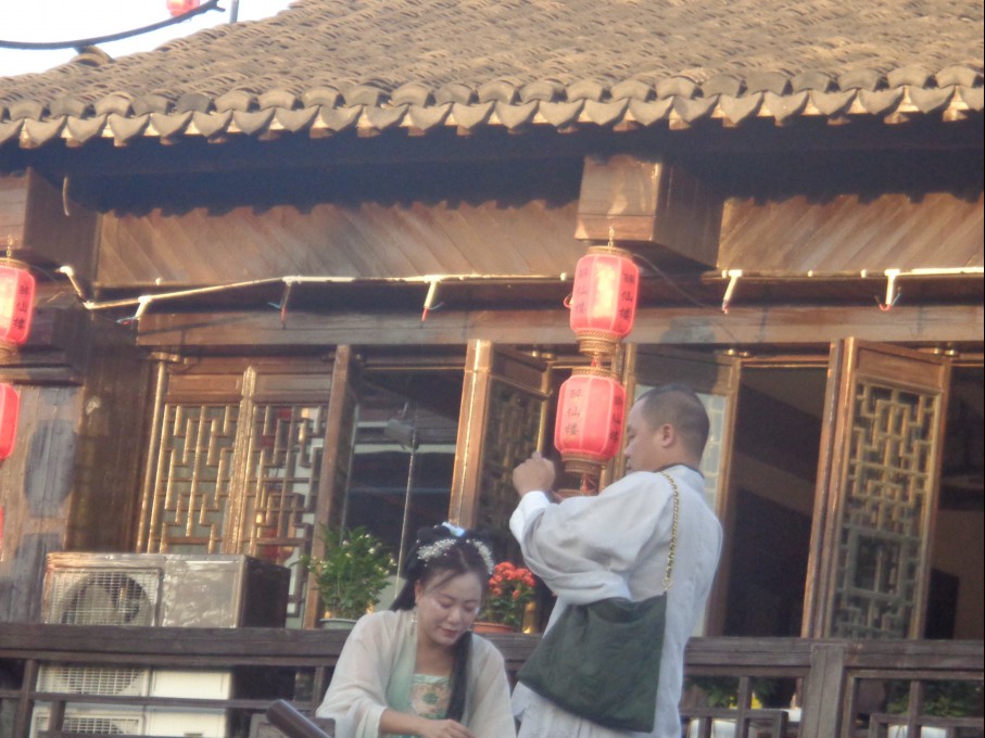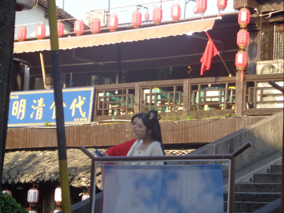 어저께 본 저우좡(주장)에도 송나라 시대의 옛 옷을 입은 사람들을 많이 보았는데 오늘 여기 시탕에서도