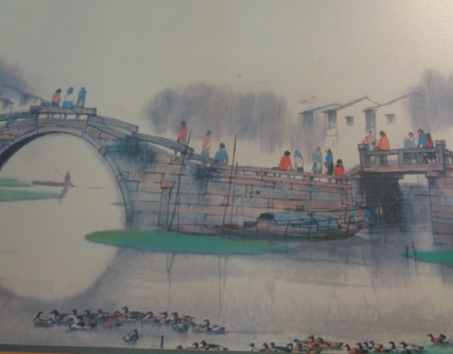 미국에 머물고 있던 중국의 화가 '천이페이' 가 1984년 쌍교를 유화로 그린 <고향의 추억> 을